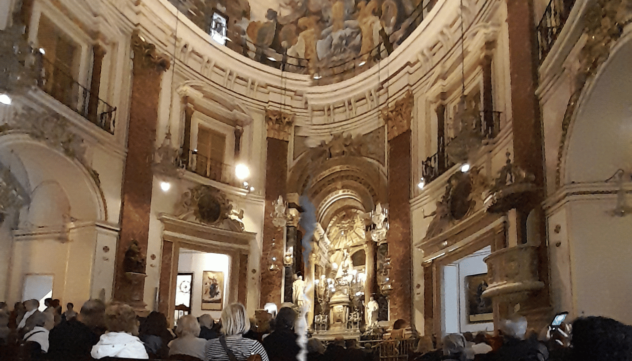 One such gem is the Church of San Nicolás, tucked away in the winding streets of El Carmen. From the outside, San Nicolás doesn’t look very large or fancy – it’s a Gothic church with a simple façade on a narrow street. But step inside, and no doubt you’ll understand why it’s nicknamed the “Valencian Sistine Chapel.”